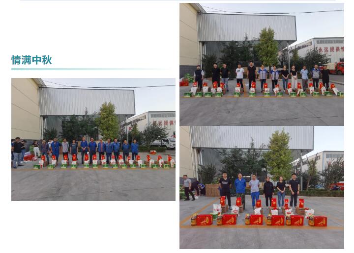每逢中秋佳節(jié)來臨之際,山東金格瑞機(jī)械有限公司都會(huì)準(zhǔn)備豐厚的禮品提前發(fā)放給大家?;ㄉ?、大米、小米、面粉、啤酒、白酒等,快來感受我們濃濃的中秋氛圍吧!